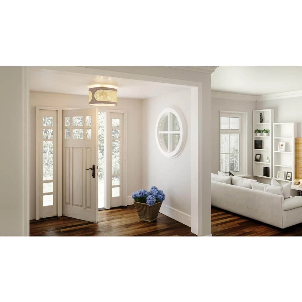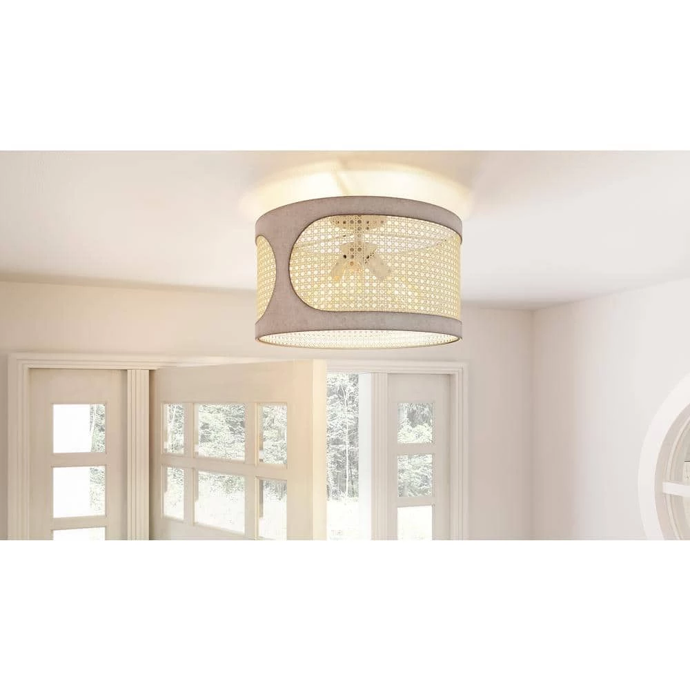 - Delicate rattan shade casts delightful shadows