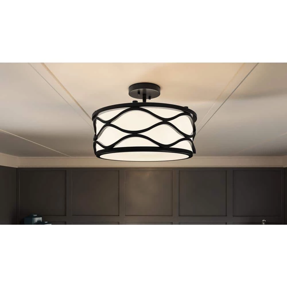 Matte black accents adorn a white fabric shade, creating a careful balance of airy and industrial style. This monochromatic flush mount is an apt choice for entryways or hallways. Or hang Tallow anywhere you want a soft, functional glow.