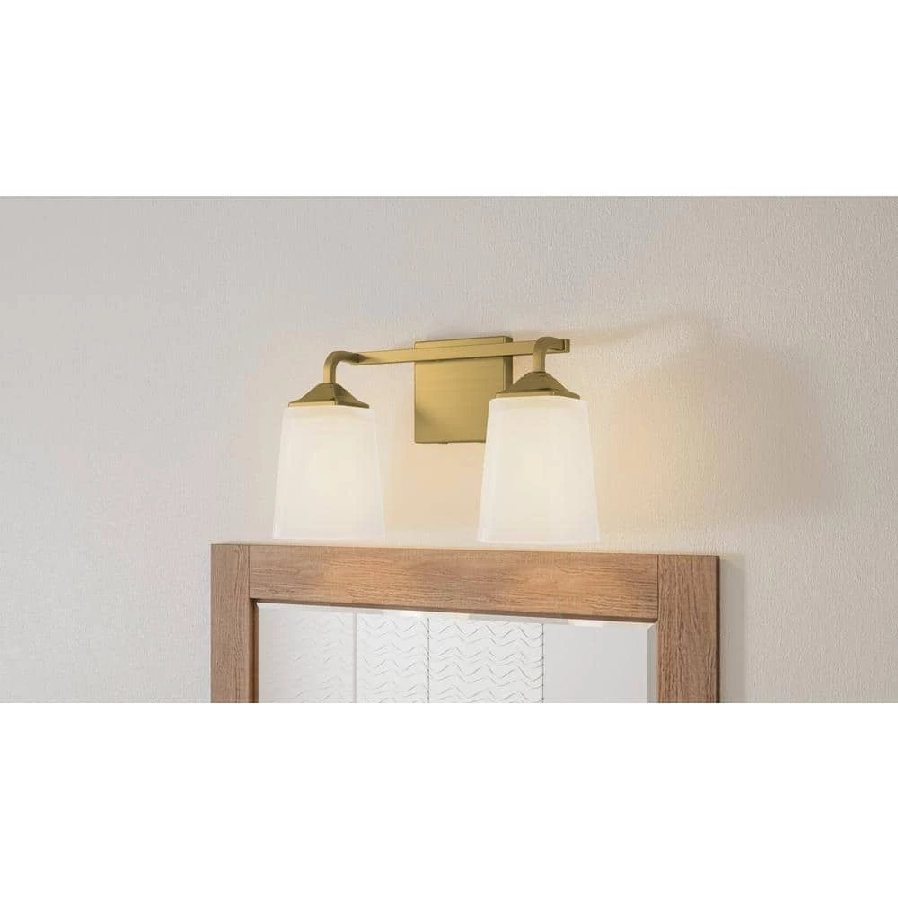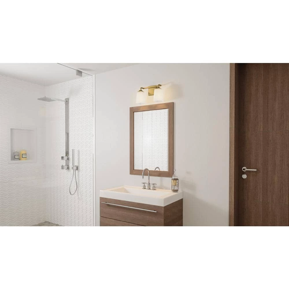 - Opal etched glass shades create a soft spa-like ambiance