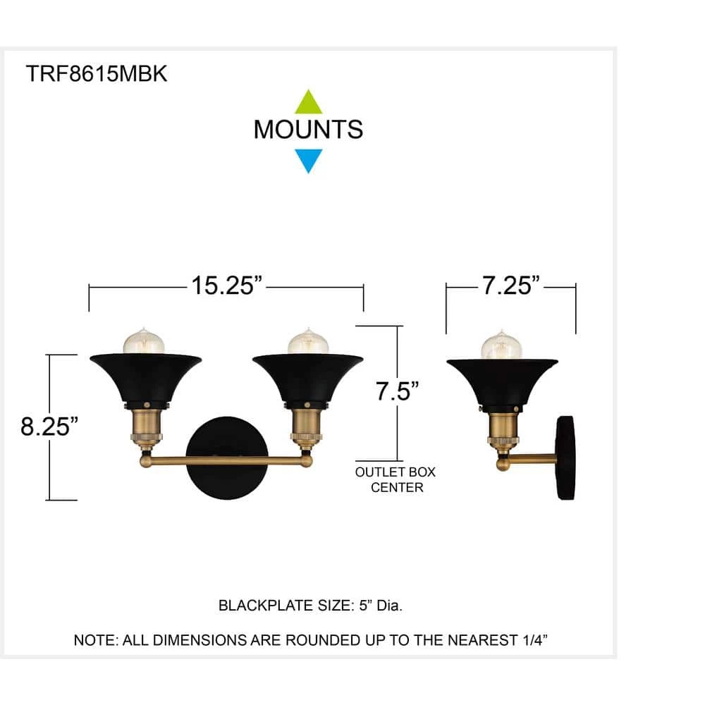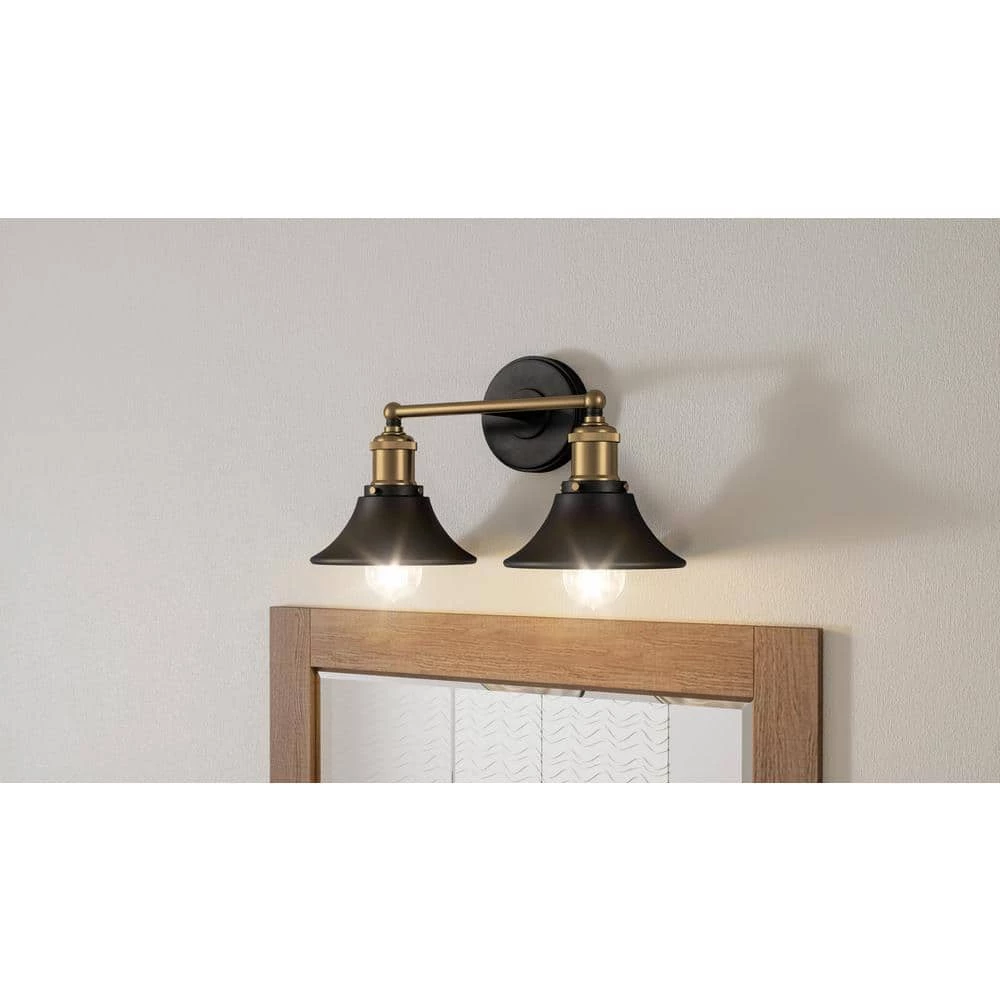 Anglophiles will love the Trafalgar bath light, bringing the London look to a primary or guest bath. Pairing bold matte black with warm, brass-tone elements, this light features a shapely shade and slightly exposed bulbs. The shade’s white interior is a clever design detail that helps maximize light.