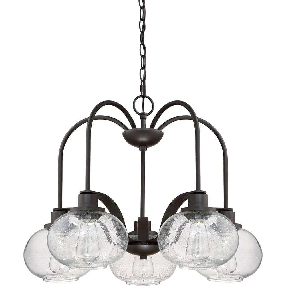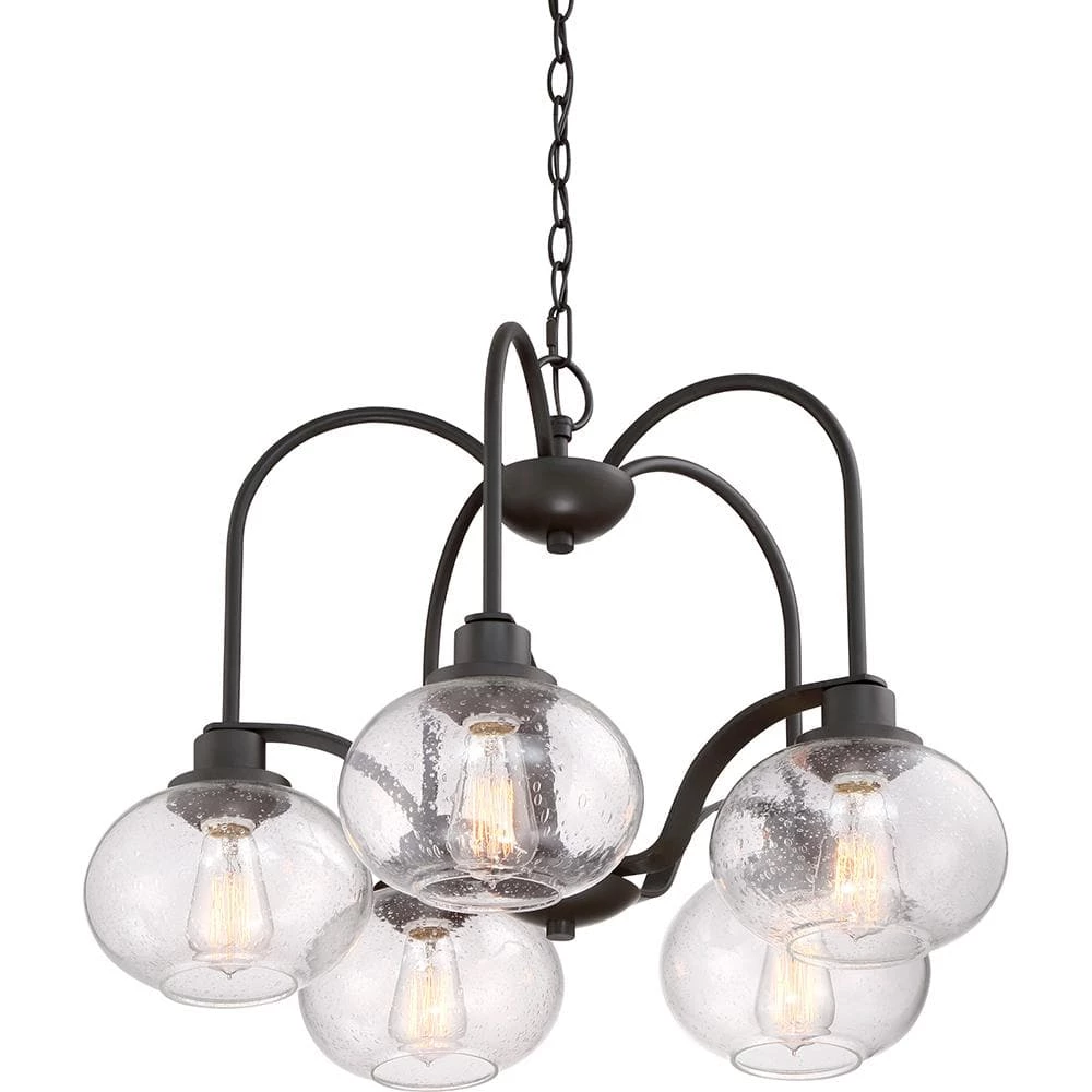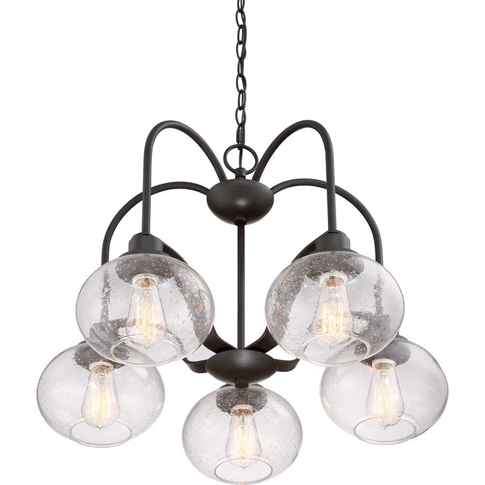 - Requires five 100-Watt medium base bulbs (included)