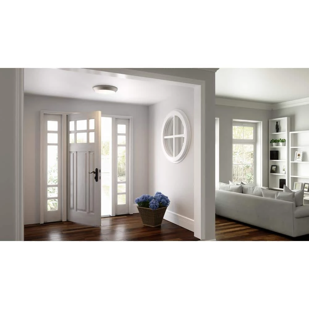 Available in 4 finishes and 5 different sizes, the Verge flush mount is suited for a variety of room applications. Choose from Earth Black, Brushed Nickel, White or Oil-Rubbed Bronze, each available in sizes of 5.5 in., 7.5 in., 12 in., 16 in. or 20 in. The domed white acrylic shade is illuminated with integrated LED technology, and the thick canopy adds depth to the simple yet classic structure. If you’re looking for practical lighting but don’t want to sacrifice style, Verge is the ideal choice.