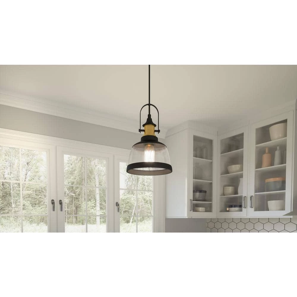 Inspired by the lines of a vintage lantern, the Warnock mini pendant features a fluted, clear glass shade. Choose from 2 versatile finishes. Matte black features gold accents and offers a farmhouse feel, while polished chrome adds welcome shine.
