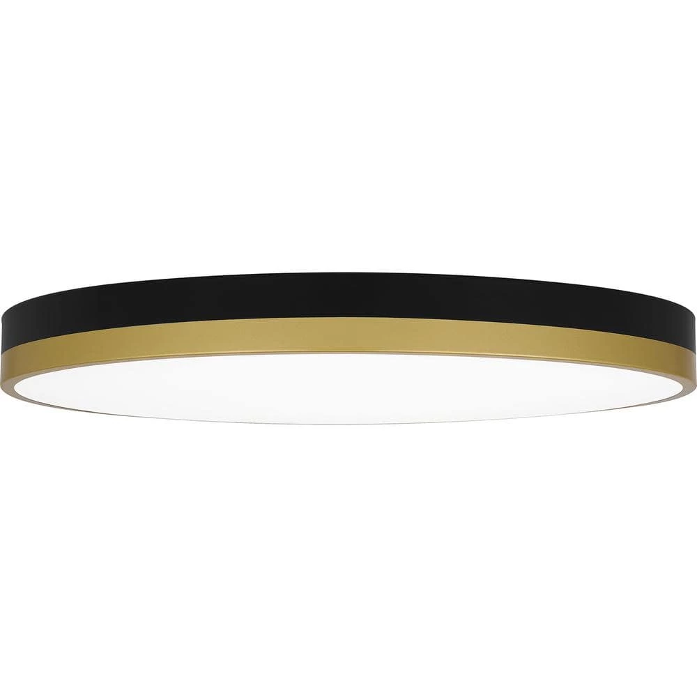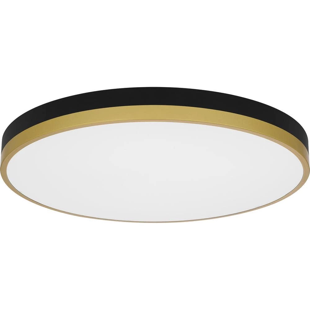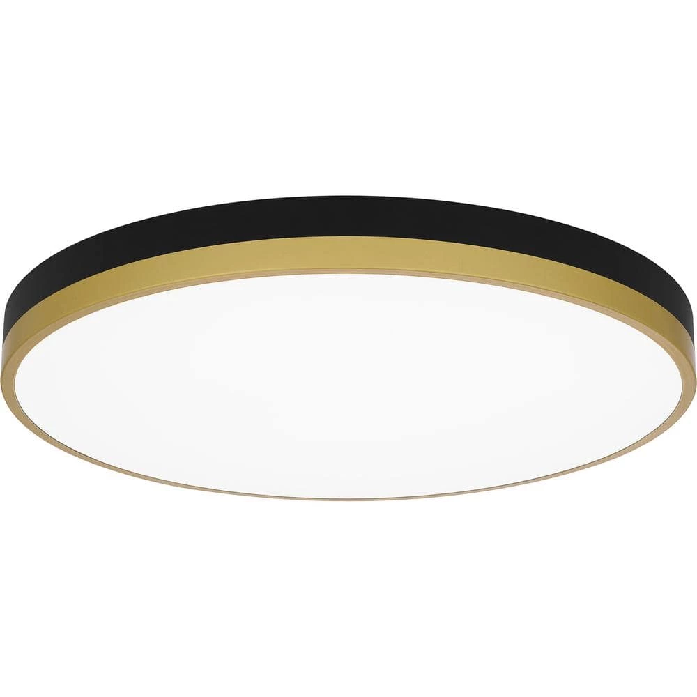 The Weldin flush mount is as smart as it is sleek. This clean, simple design features an integrated LED light source for a dependable glow in entryways, hallways or home offices. 2 eye-catching color palettes – either matte black and gold or matte black and white – complement a multitude of interior design styles.