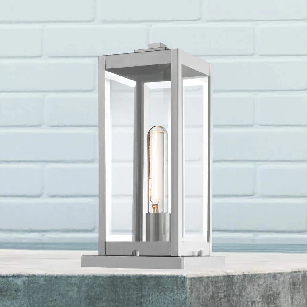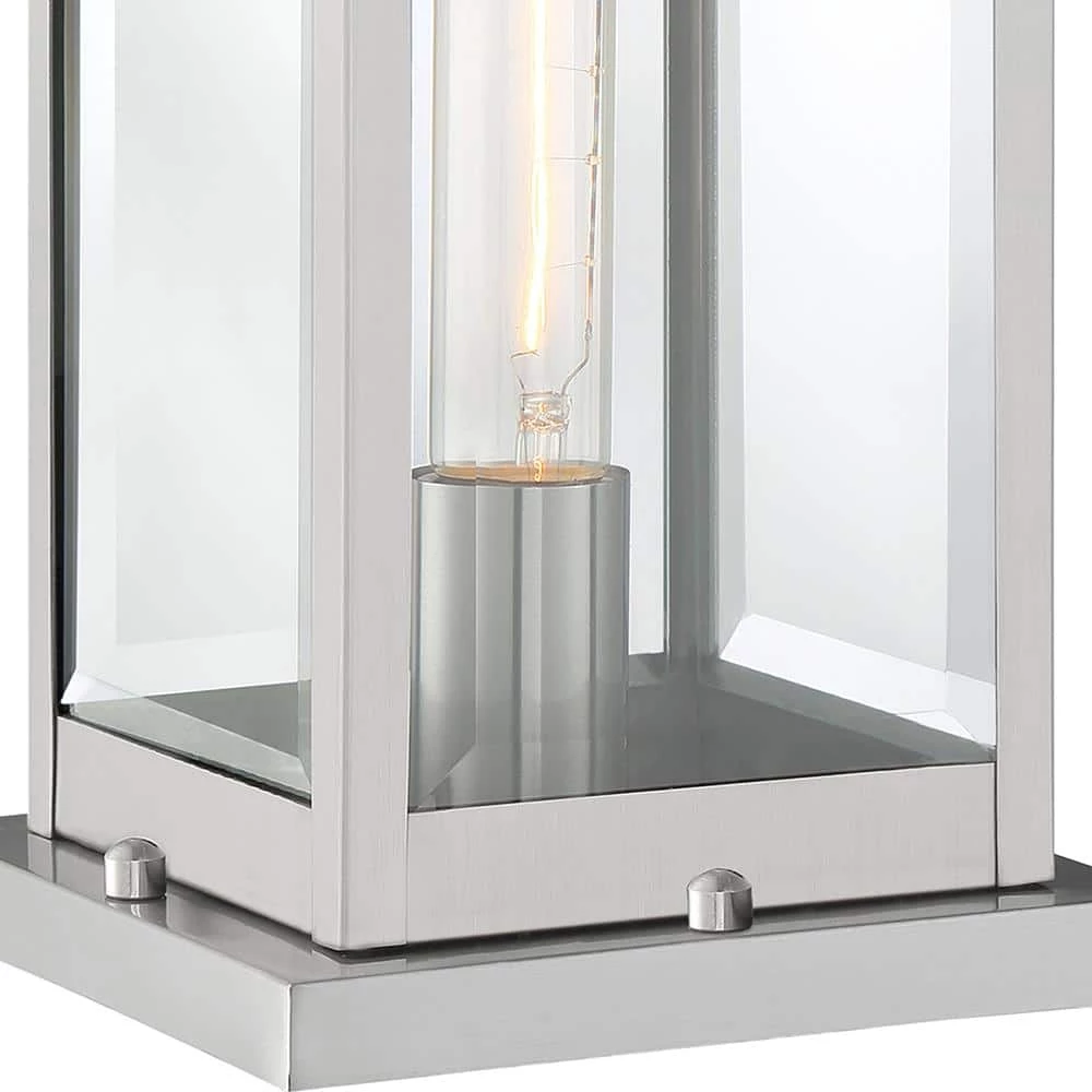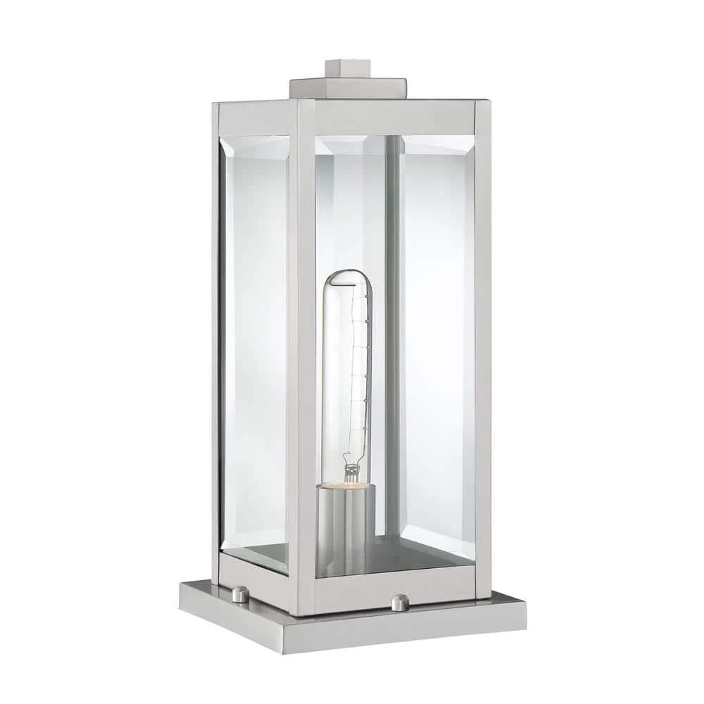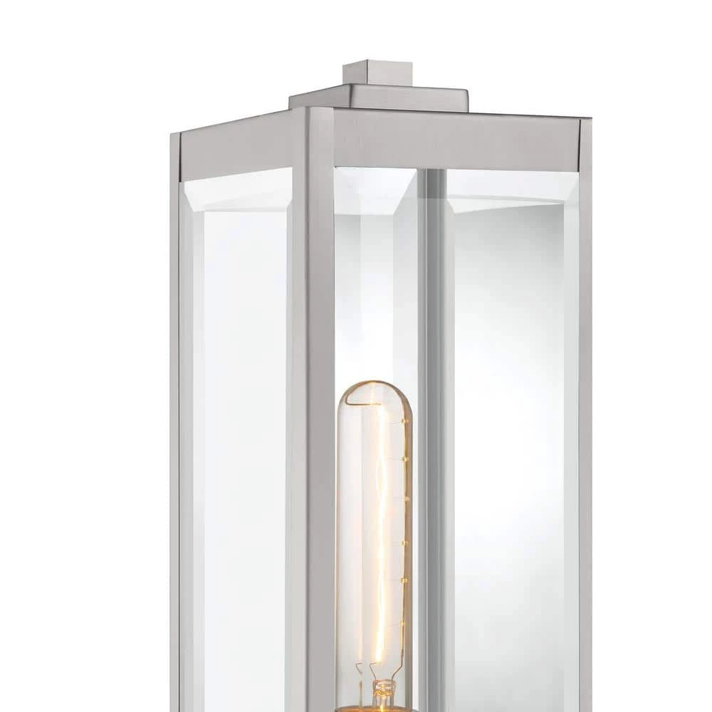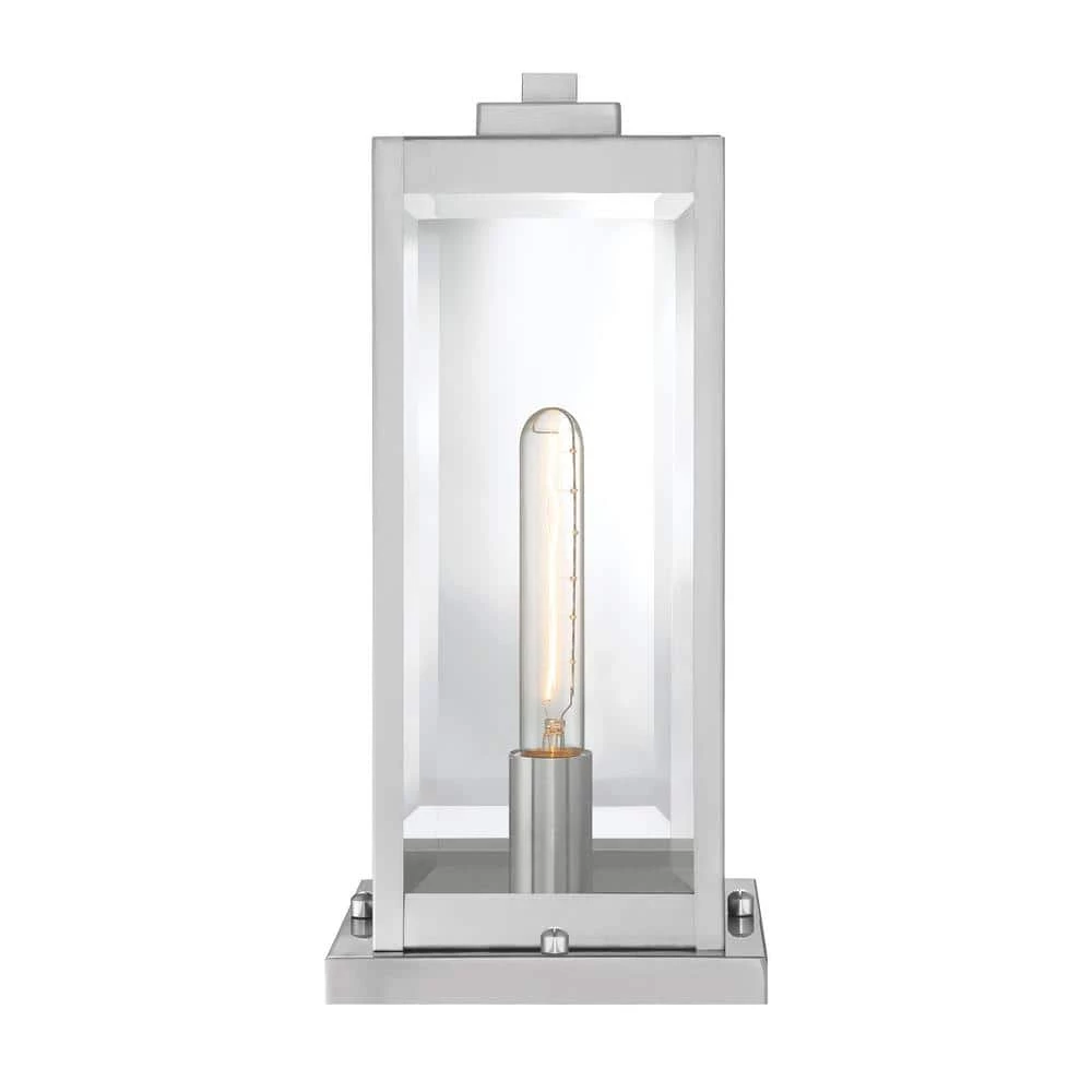 The clean lines and hand-riveted accents make the Westover lantern collection a modern industrialist’s dream. A long rectangular framework provides an unobstructed view of the lantern’s sleek interior. The choice of earth black, antique brass, industrial bronze, stainless steel, or western bronze further enhances the versatility of this refined collection. The earth black, stainless steel, and western bronze finishes show off clear beveled glass panels while the antique brass and industrial bronze options flaunt seedy glass.