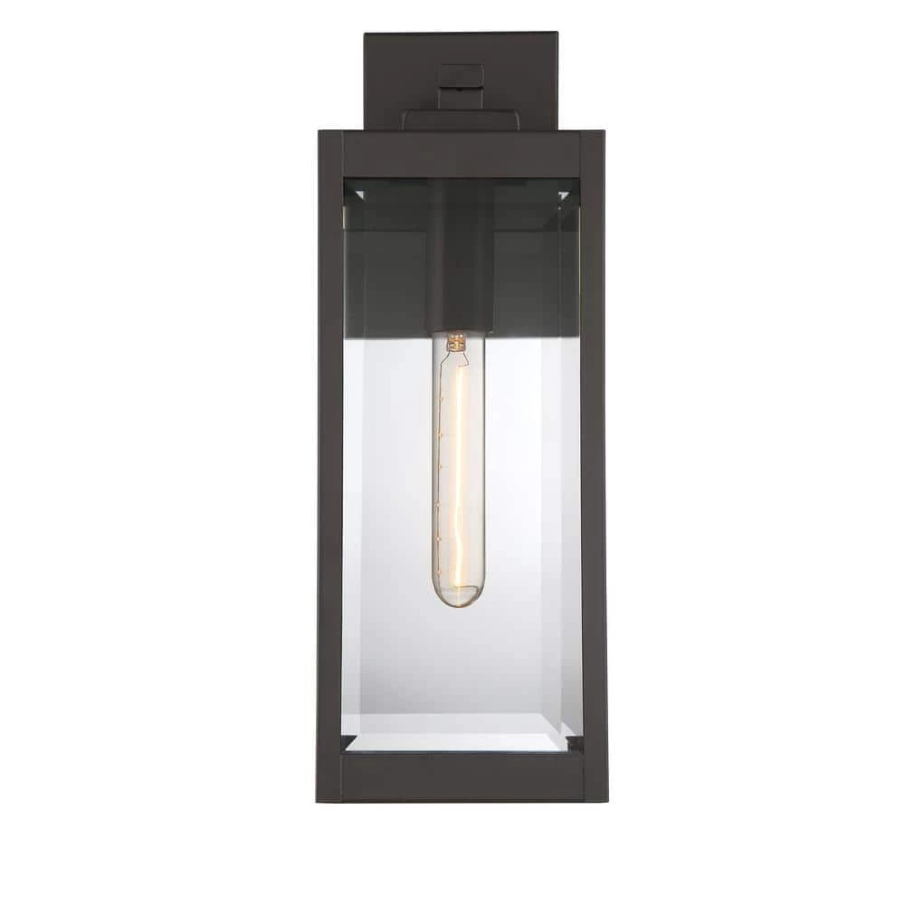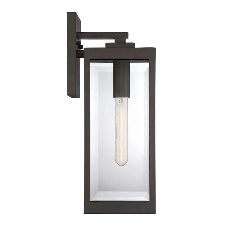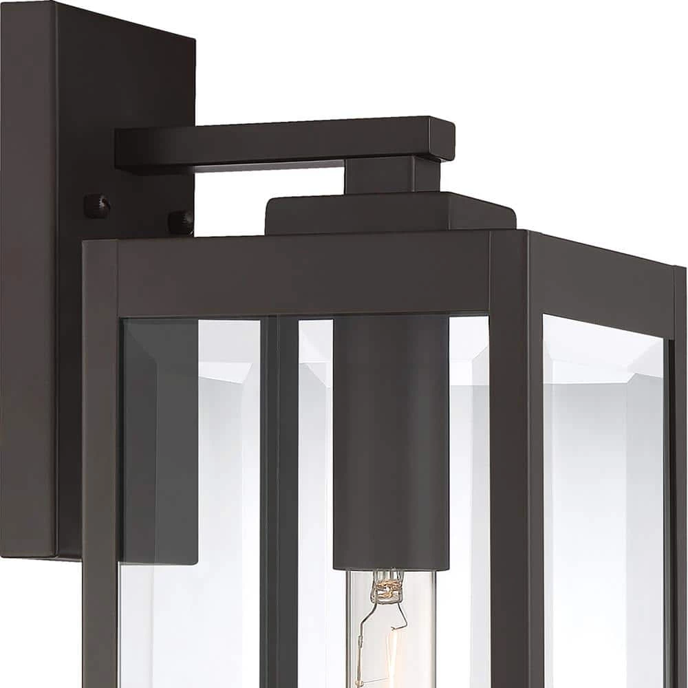 The clean lines and hand-riveted accents make the Westover lantern collection a modern industrialist’s dream. A long rectangular framework provides an unobstructed view of the lantern’s sleek interior. The choice of earth black, antique brass, industrial bronze, stainless steel, or western bronze further enhances the versatility of this refined collection. The earth black, stainless steel, and western bronze finishes show off clear beveled glass panels while the antique brass and industrial bronze options flaunt seedy glass.