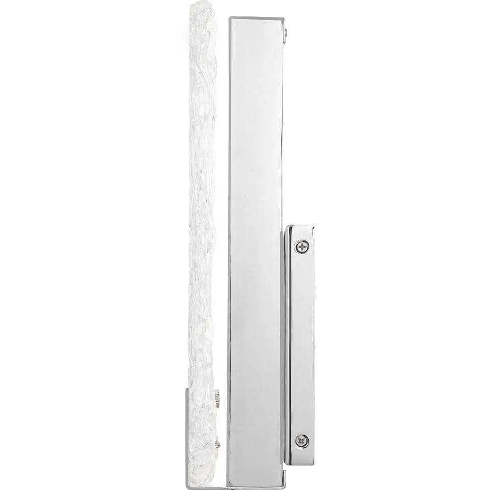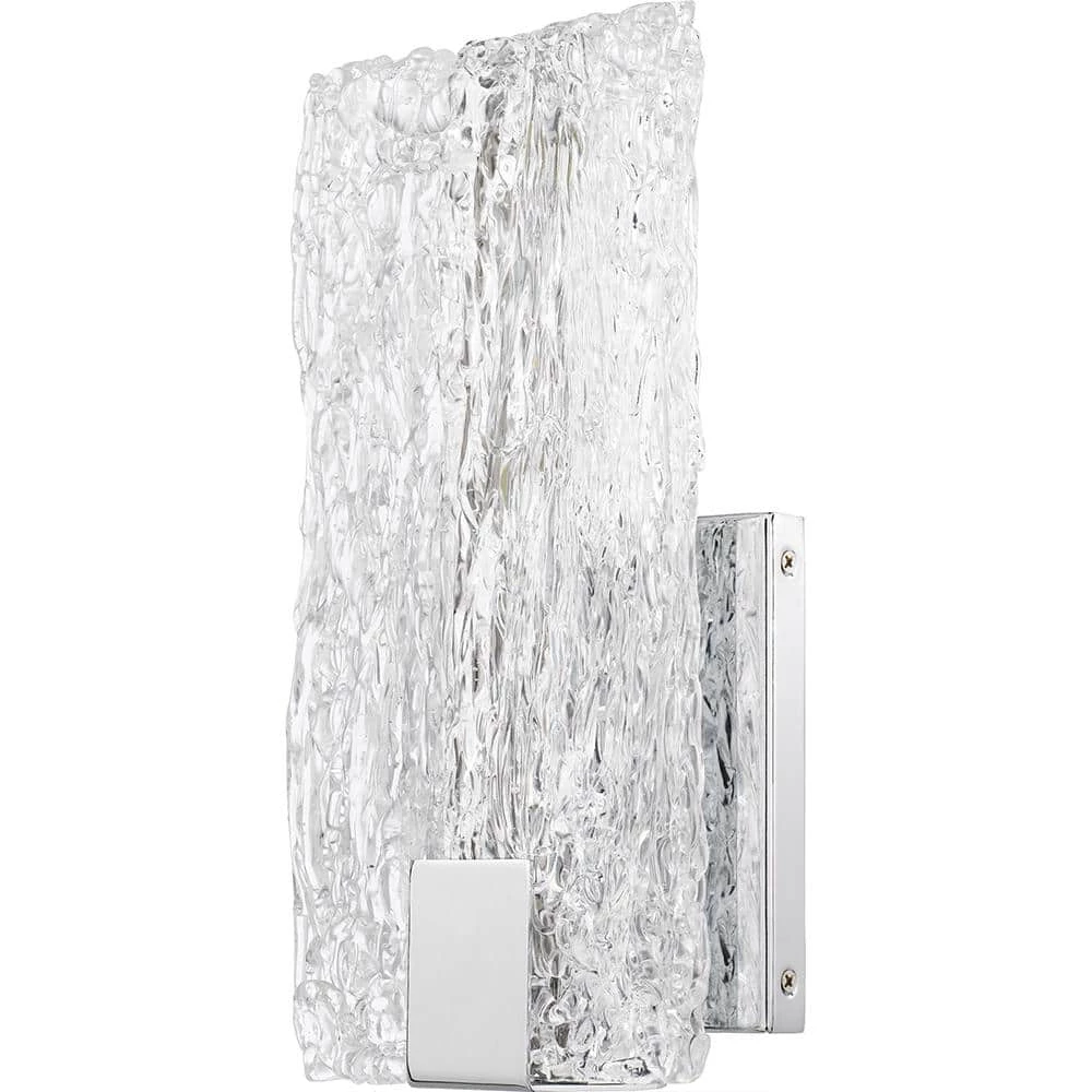 Inspired by delicate sheets of ice, the Winter collection is intense and dramatic. The integrated LED technology runs across the full length of the fixture, showcasing the unique crackling effect of the glass. Keeping with the contemporary style, the backplate and side brackets are finished in a glossy polished chrome.