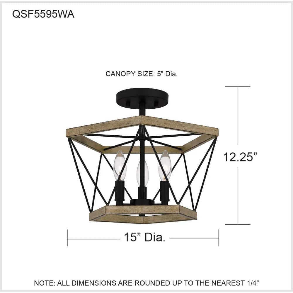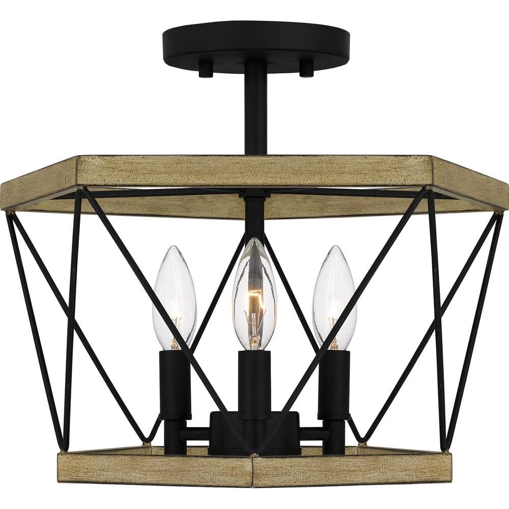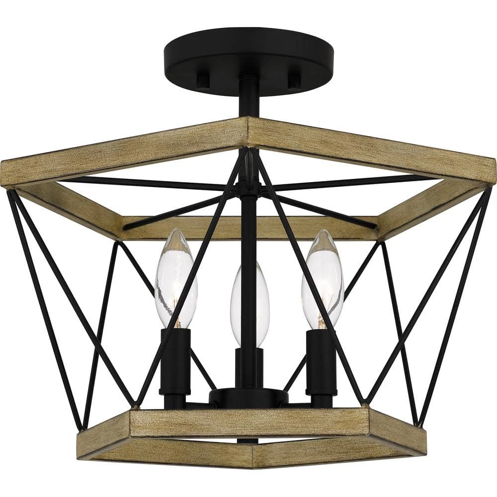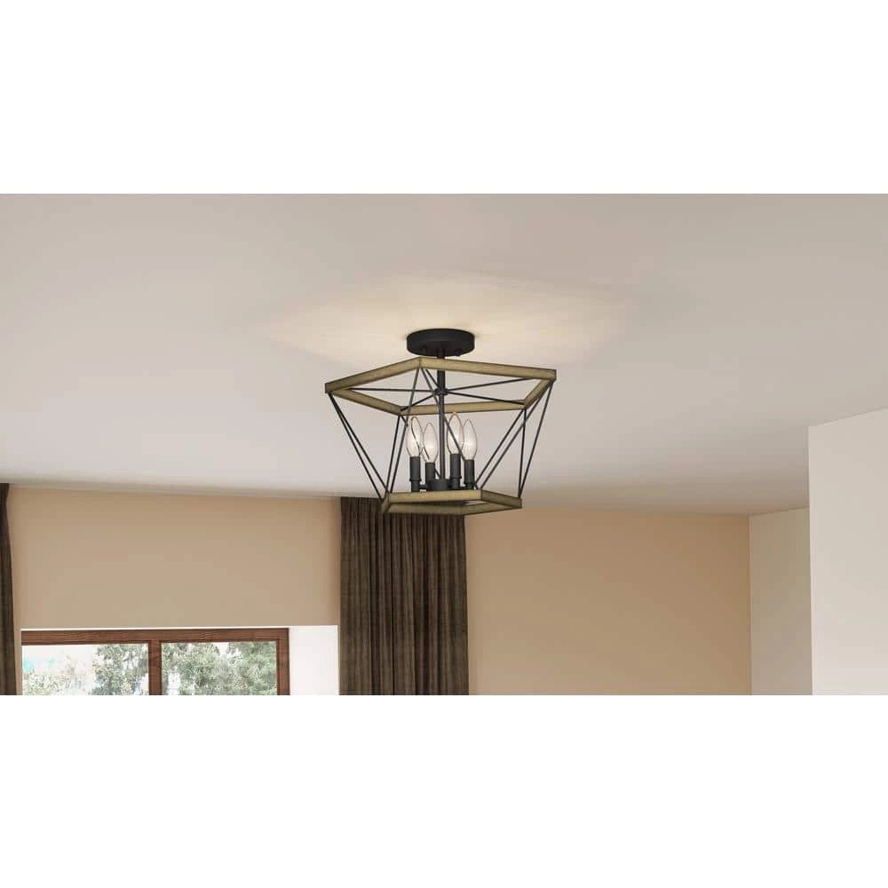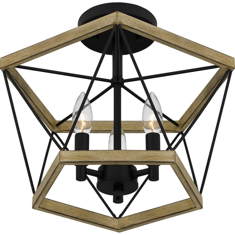 Geometric and bold, the Wintergreen semi-flush mount features modern ironwork detailing. Choose the aged walnut finish to add warmth and texture. Or, imbue your space with an airier look by selecting the whitewashed walnut colorway.