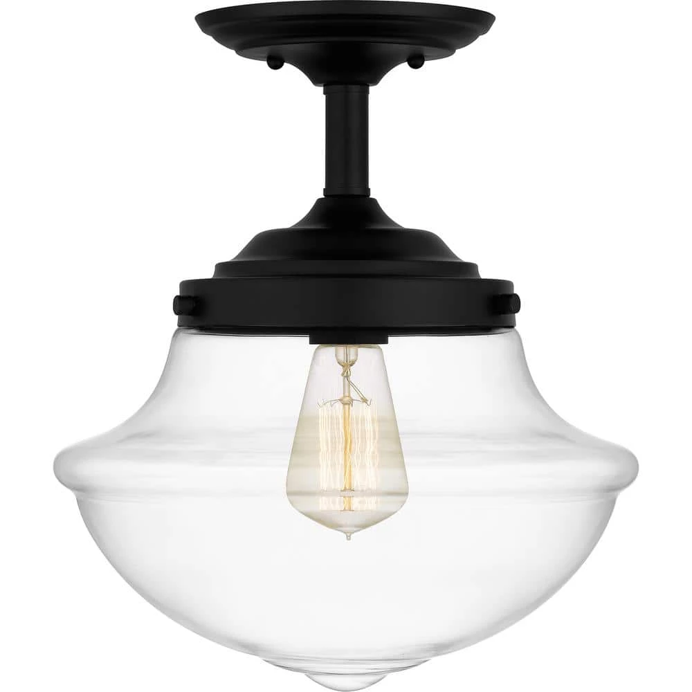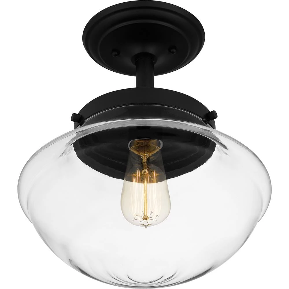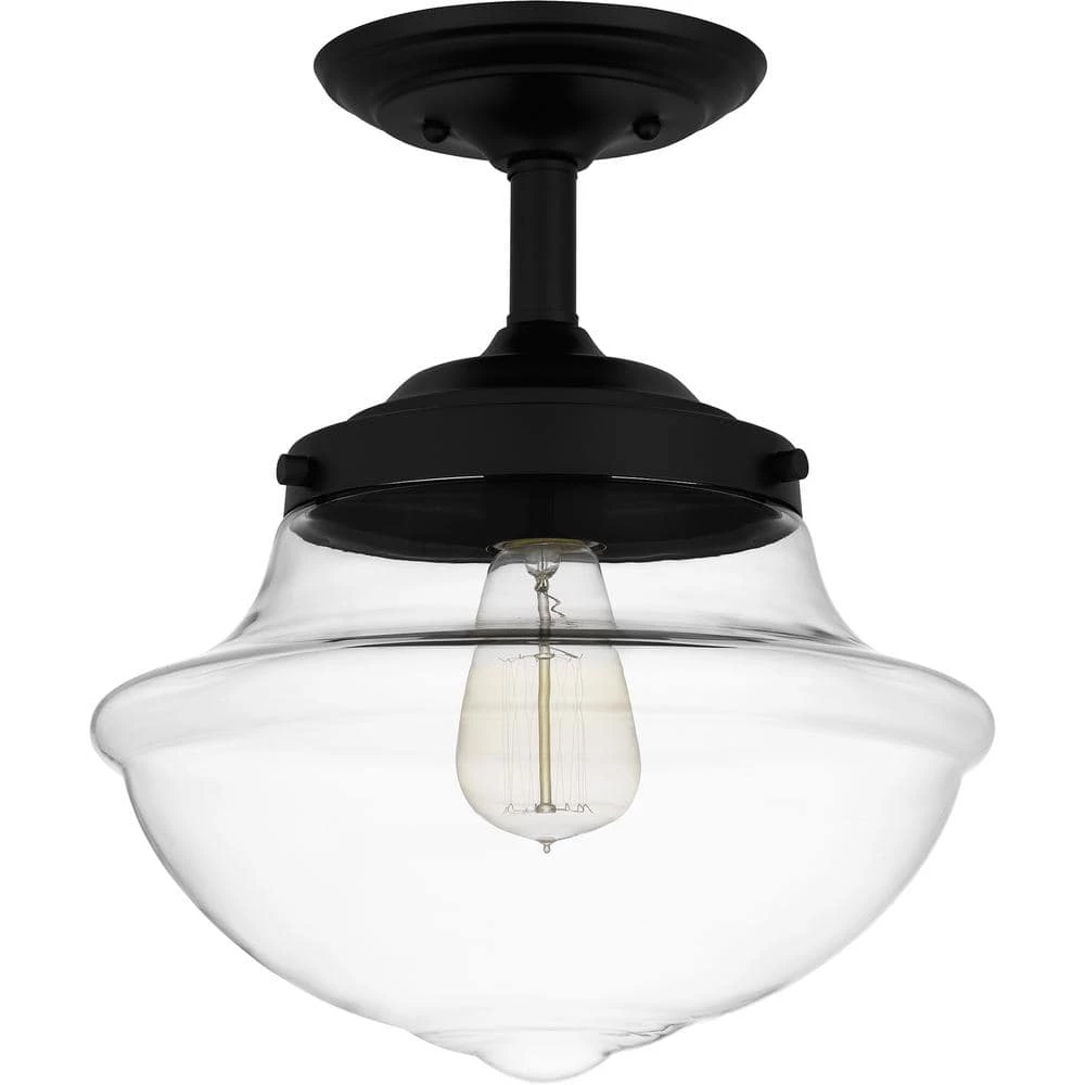 Heritage details abound in the Wrede semi-flush mount. With a clear glass shade and matte black finish, Wrede presents a classic aesthetic. In a hallway or bathroom, this design radiates timeless style.